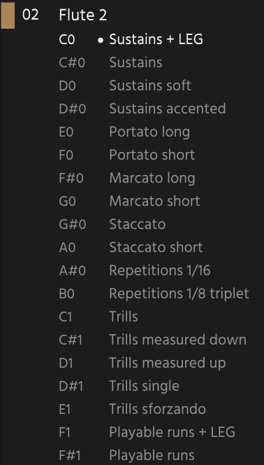 There is also staccato tight for the flute, which is notably shorter and sharper. The clarinet has tight and soft staccato options - here the regular is the most aggressive, tight is shorter and soft is both softer and a little longer.
