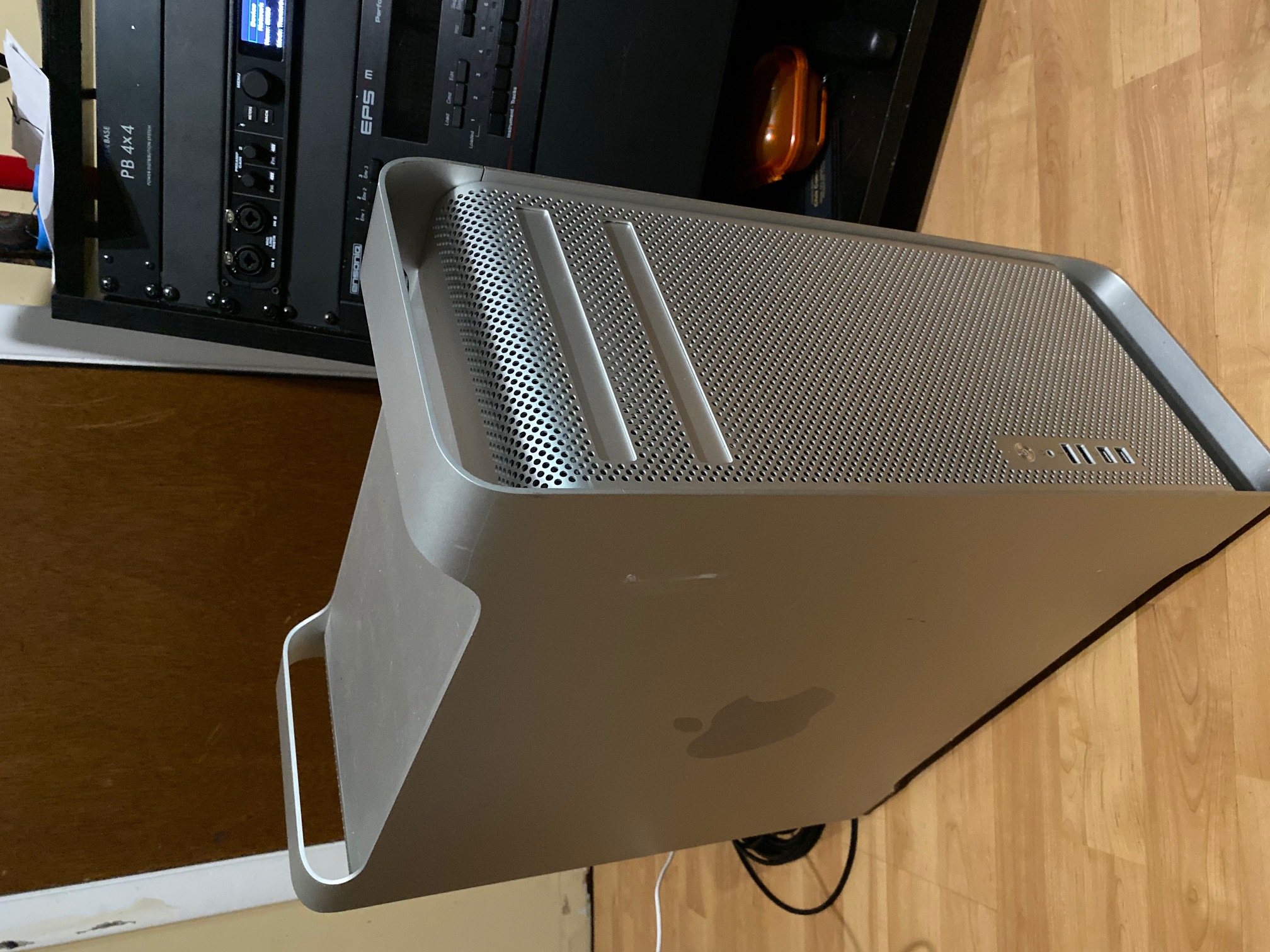 I've upgraded the studio and am selling the workstation. It is still running strong so unless you need Thunderbolt this makes for a great DAW computer. The case has some scuffs and the bottom rear foot was bent once but I fixed it enough to sit flat.